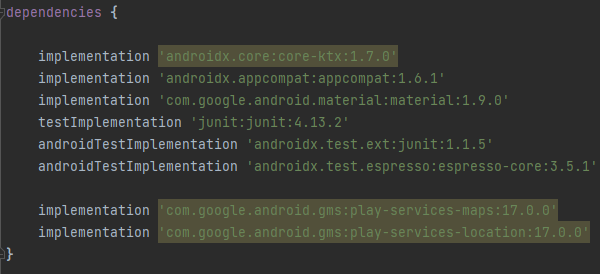 설치한 Google Play Services를 적용하기위해 app모듈의 build.gradle 파일에도 아래와 같이 작성합니다.