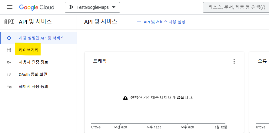위의 API 사용 설정됨 메세지로 변경됨을 확인하였다면, 위의 화면에서 왼쪽 3줄 버튼 클릭하여, API 서비스 - 사용자 인증 정보를 클릭하여 화면으로 이동합니다.
