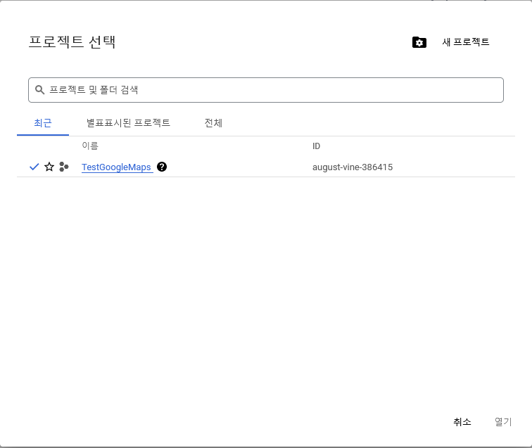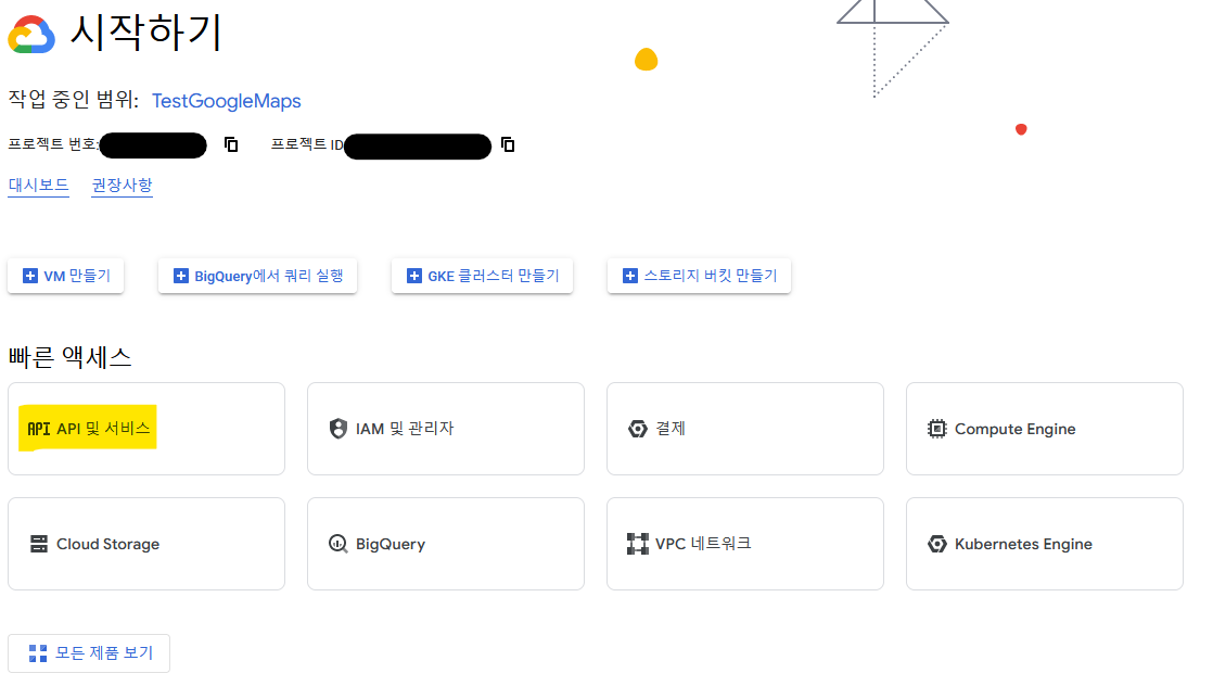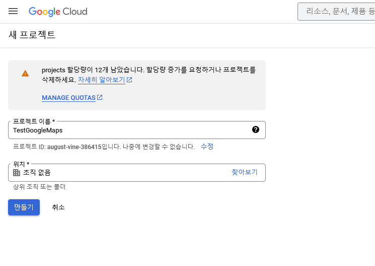 일단 모든 API를 사용하기 위해서는 API키가 필요합니다. Google Maps는 그 전에 Google Cloude Console이라는 페이지로 이동하여 프로젝트를 생성합니다.