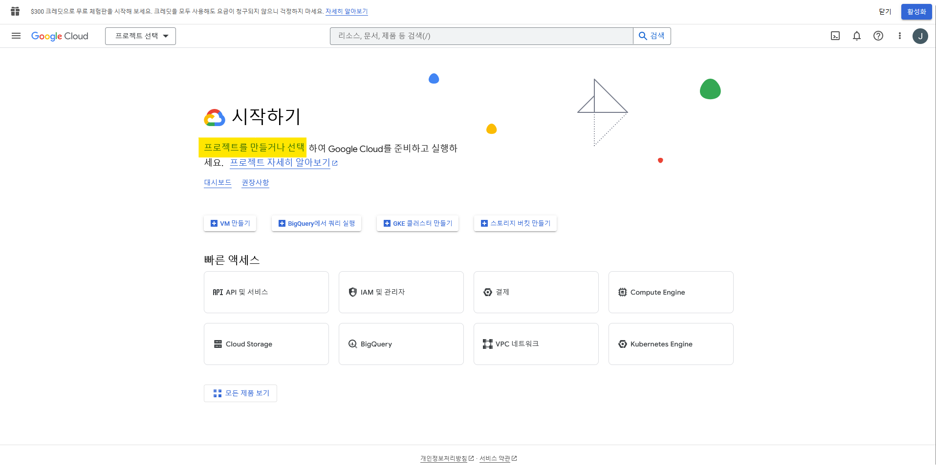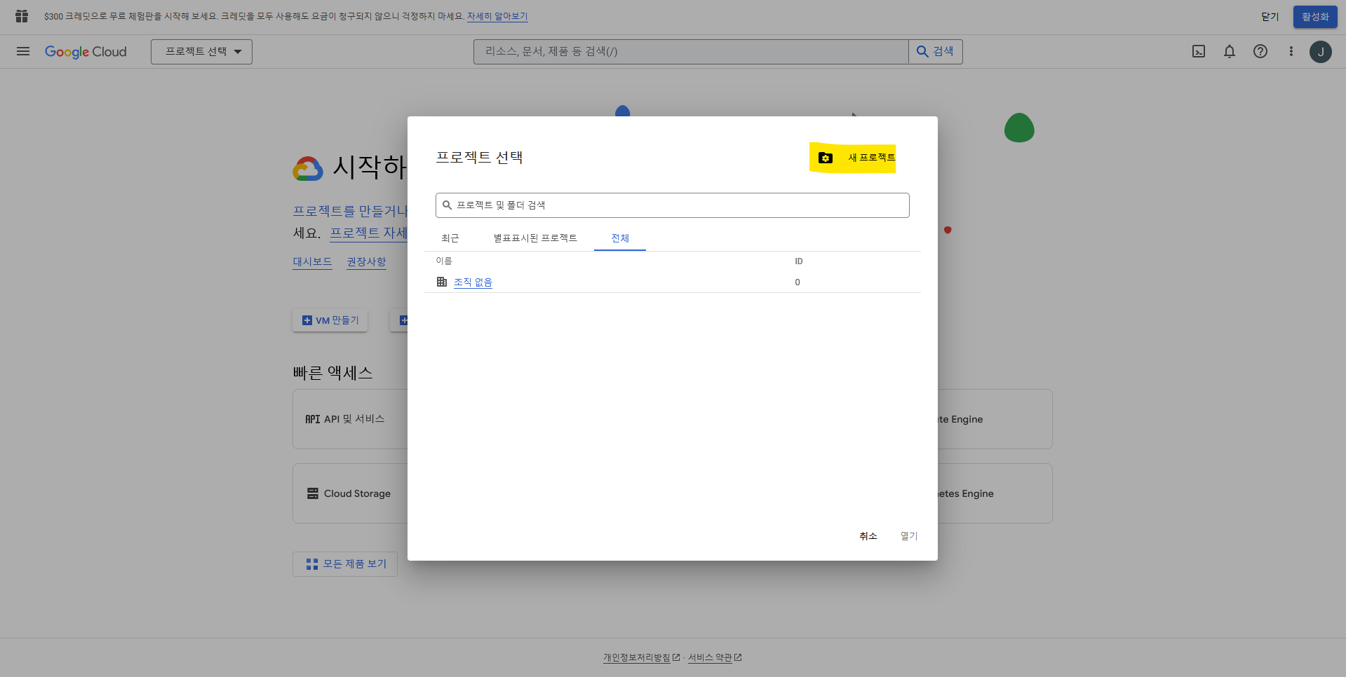 위의 링크를 클클, 프로젝트를 만들 Google 계정으로 로그인하면 아래의 화면을 만날 수 있습니다.
